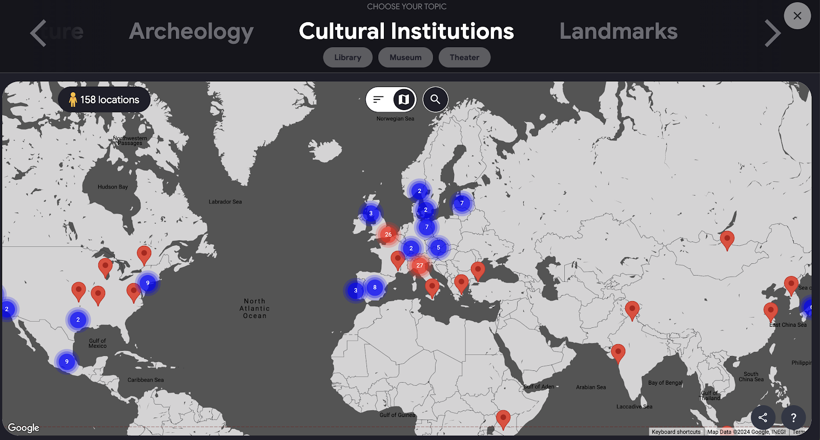 Where Can We Go?There are currently four main categories, with subcategories under each one. You can choose from the map, list view, or search for what you are looking for. - Cultural Institutions: Library, museum, theater (158 locations)